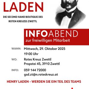 Henry Laden Rotes Kreuz Zwettl sucht freiwillige Mitarbeiter:innen Infoabend zur freiwilligen Mitarbeit im Henry Laden, die Second Hand Boutique des […]