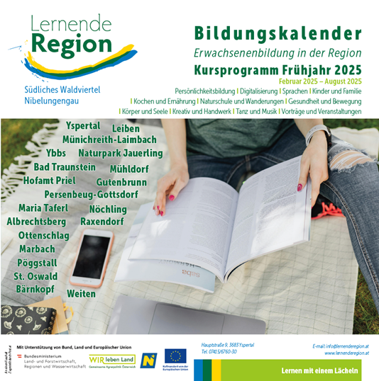 Im Bildungskalender der Lernenden Region Südliches Waldviertel – Nibelungengau finden Sie Kurse, Vorträge, Seminare und Workshops zu den verschiedensten Themen.