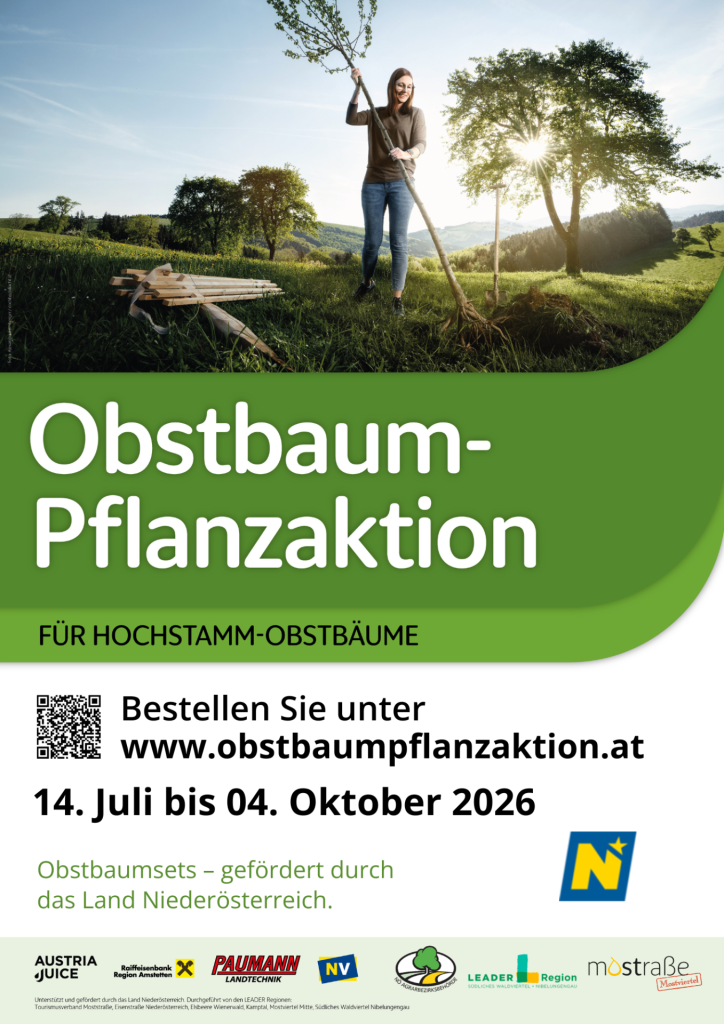 Im Zuge der diesjährigen Obstbaum-Pflanzaktion können von 14. Juli bis 4. Oktober 2026 unter www.obstbaumpflanzaktion.at Obstbaumsets bestellt werden.